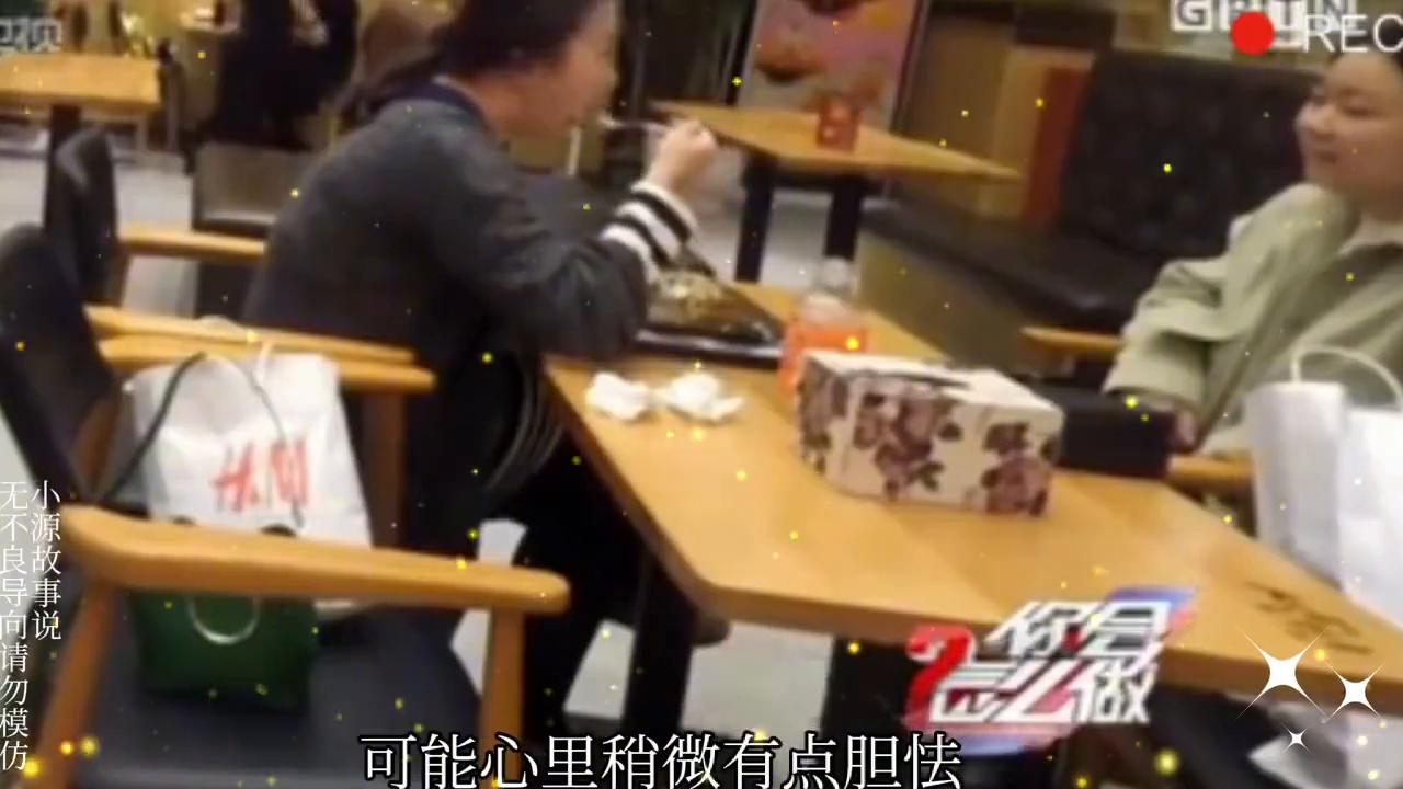 然而邻桌的两位姑娘仍未察觉,男子自以为很顺利地完成了任务。可他不知道的是,在距离他很远的另外一桌,一名绿衣女子眼睛正在死死地盯着他。此时男子还在一直不停地搅拌着,完全不知道事情已经败露。