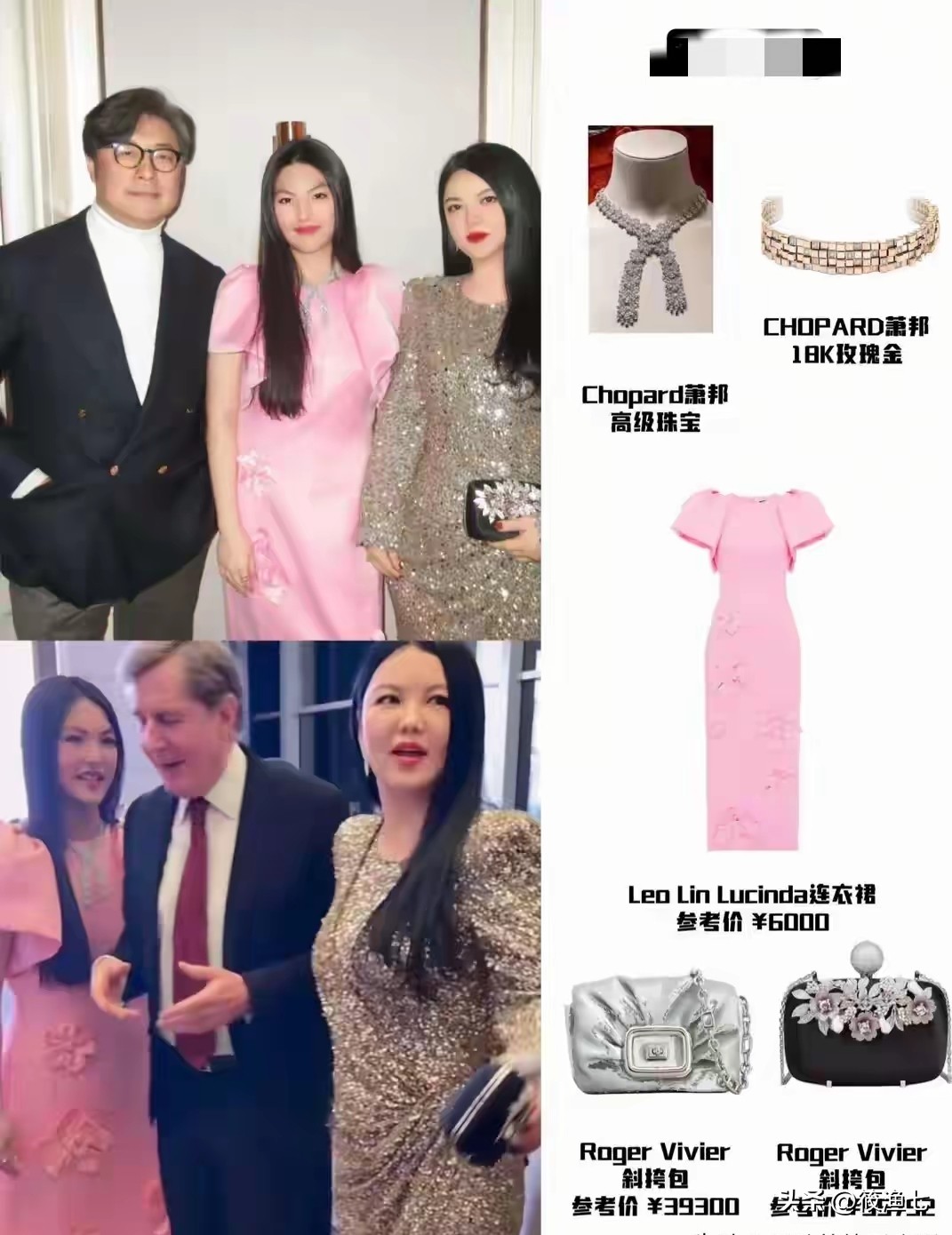 李湘穿着一条香槟色闪闪发光的长裙礼服,手拿五万多的包包,王诗龄身穿一身粉色的连衣裙,手拿价值4万的包包,脖子手上的首饰据传都是定制的价值20万左右,妥妥就像一身价值不菲的走秀场。