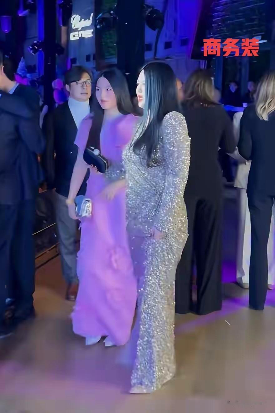 这场晚宴上每一个人的穿搭几乎都是简约的商务风为主,没有几个人穿着像李湘王诗龄这样的亮色晚宴风,别人都是在商务交谈的样子,王诗龄和李湘就像出席哪个红毯或者时尚秀的聚会晚宴。