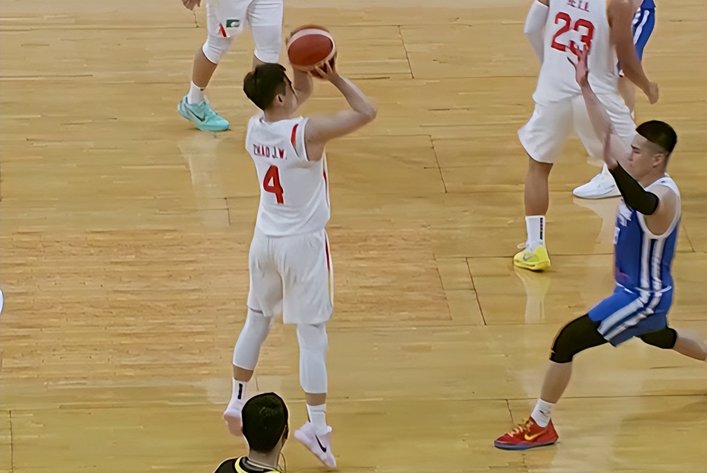 第三节,赵睿开场命中三分,中国台北男篮多点开花,陈盈骏、林庭谦和高伯铠连续得分,中国男篮处境被动,分差一度被拉开到11分。朱俊龙和廖三宁带队追分,三节结束后中国男篮71比77落后6分。第四节决战,李弘权两分打进,陈盈骏和林庭谦连续得分,分差9分。困难时刻,朱俊龙三分命中,胡金秋内线得分,中国男篮缩小分差到4分。