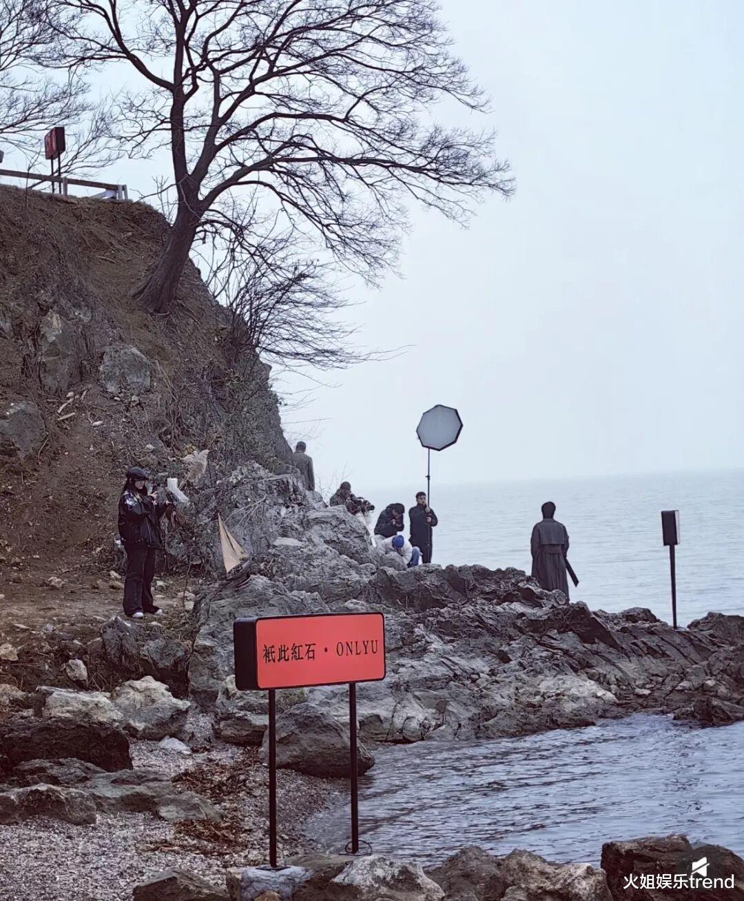 冬天的巢湖边上冷风瑟瑟,连给陈晓帮忙拿衣服的工作人员都发社交媒体,吐槽天气冷又辛苦。