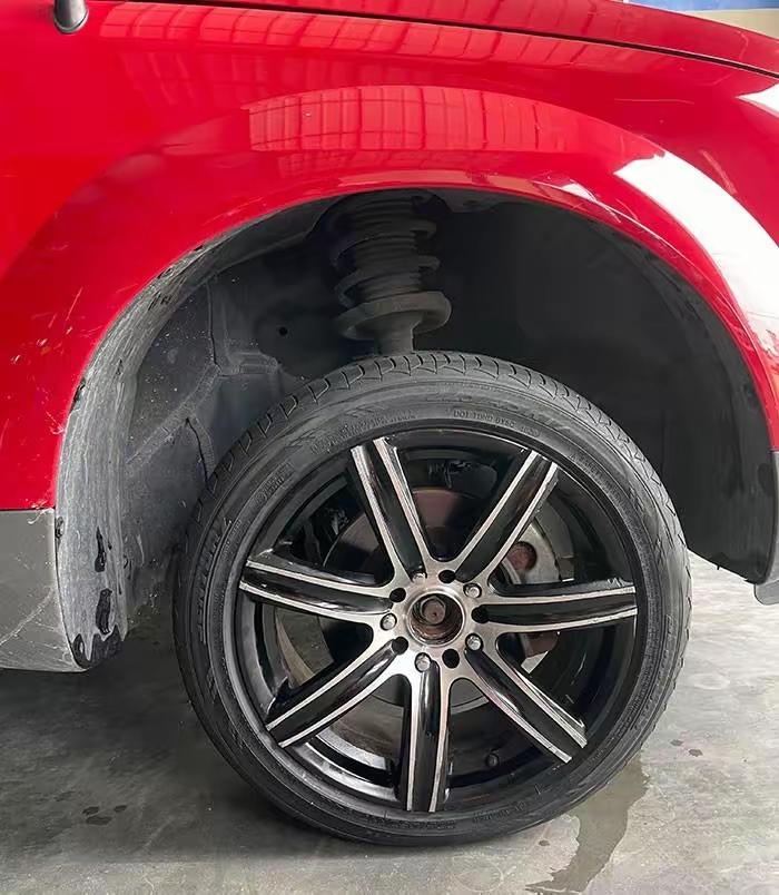 12、客户在网上购买了车轮和轮胎,尺寸有点少,但是他坚持让我们把它装上。