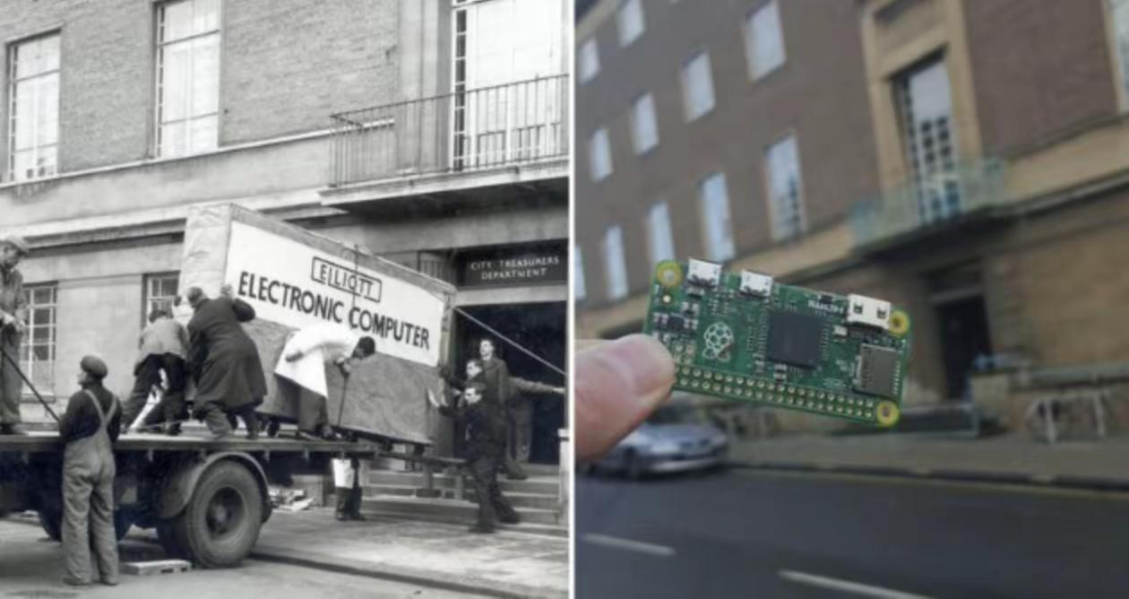 23、58年前后,在同样的地方,两个同样存储记忆的芯片,随着时代的进步,已经从巨大变成了非常迷你的形状。