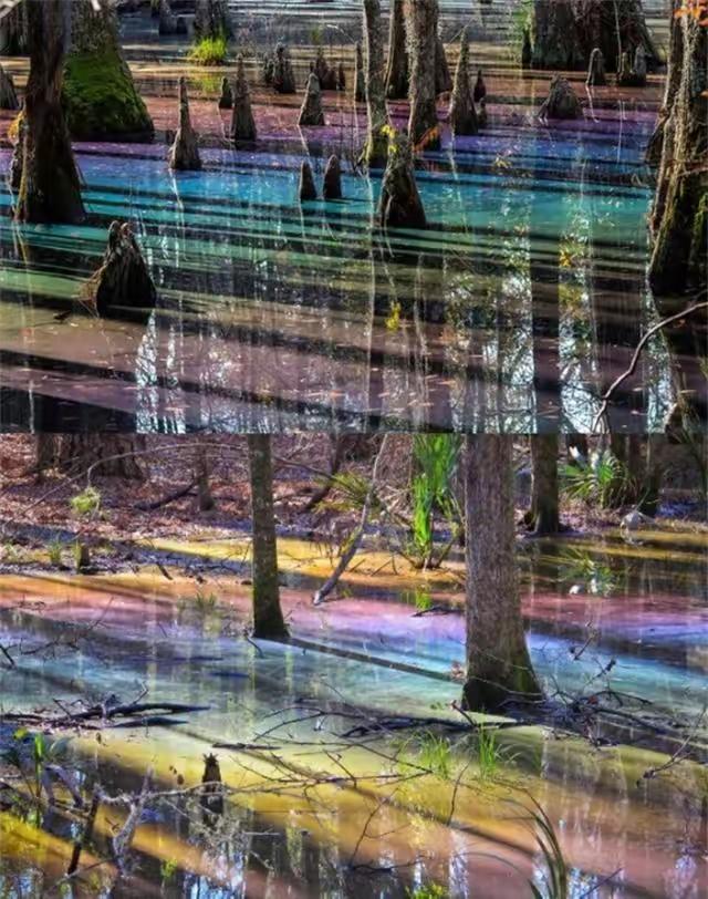 20、主要是由于阳光折射水面上的油膜形成的。