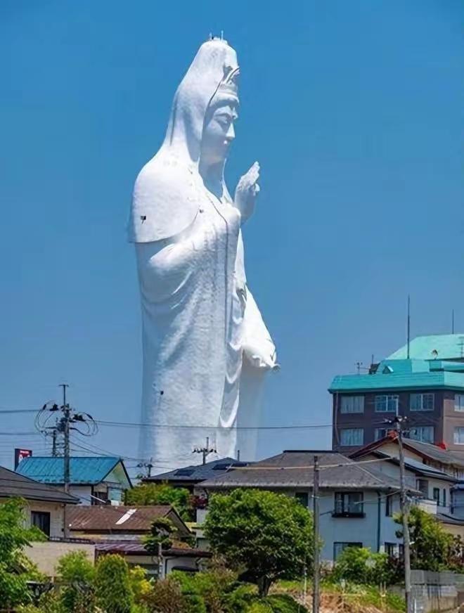 6、高处俯瞰日本仙台观音雕像,它的巨大和庄严让人感到心灵的震撼和洗涤,仿佛在与观音菩萨进行一场心灵的对话。