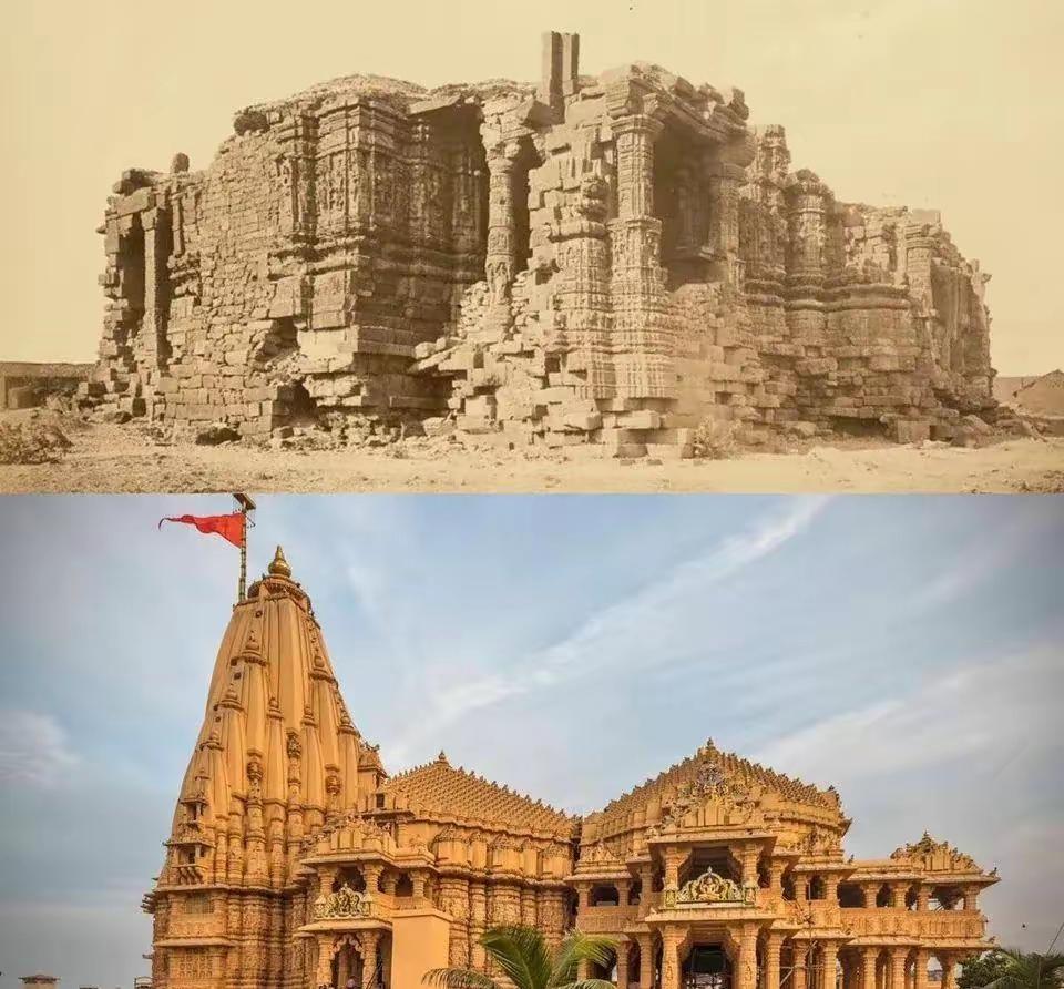 18、印度Somanātha 神庙在1885年还是一片废墟,经过修复后如今已焕然一新。目睹这些石块重新拼砌成宏伟建筑的过程,不禁让人对人类的智慧与毅力肃然起敬。