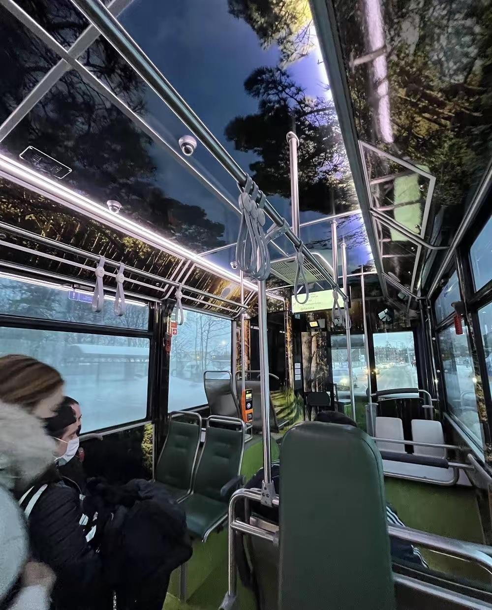 33、这是爱沙尼亚塔林的公交车,为了客户的乘车更好的体验,公司把这个公交车直接装修成了森林模式。
