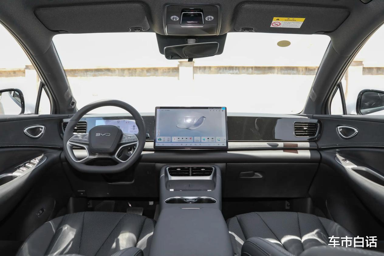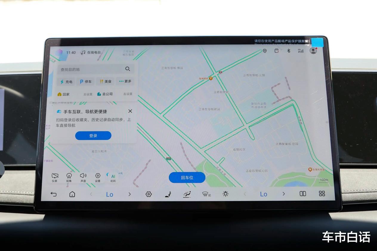 深蓝S07的内饰也有种精致的氛围感,三辐式多功能方向盘,也支持上下+前后调节,换挡形式也是电子式怀挡,操控方便。车内未配备仪表盘,但却标配了55英寸AR-HUD增强现实抬头显示系统,可将行驶数据和车况信息,以及路况指示箭头投射到前挡玻璃上,省去了低头看仪表盘的麻烦。车内配备了15.6英寸中控屏,内置的是高通骁龙8295芯片,具备4G网络、语音识别、应用下载等功能。而50W手机无线充电面板的加入,更是为用户提供了方便。