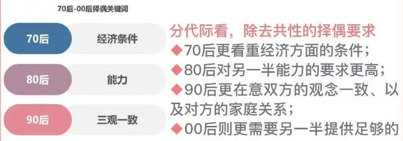 在选择对象的时候,他们也不再只看重传统意义上的家庭责任感,更加注重能否得到精神和情感上的支持。