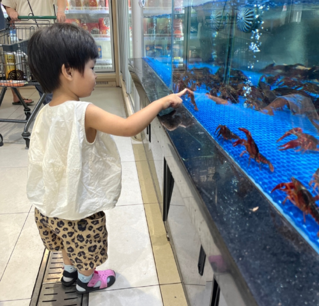 可以教孩子认识大龙虾与大闸蟹的区别,观察各种各样的鱼、鳖,了解他们的生活习性。