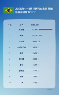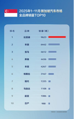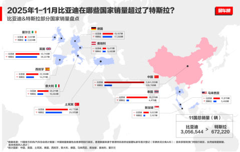 2025年1月至11月,比亚迪在全球汽车市场表现强劲,成为多国新能源汽车销售冠军,并在11个核心国家市场中销量超越特斯拉,展现出中国汽车品牌的全球竞争力。多国销冠全面超越!