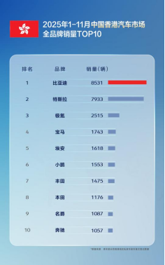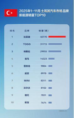 在区域市场方面,比亚迪在巴西、土耳其、意大利、西班牙、匈牙利、克罗地亚等国夺得新能源汽车销量第一;在新加坡、中国香港等地更是斩获全品牌销冠,深受当地消费者青睐。今年以来,比亚迪在英国、德国、奥地利、爱尔兰、马来西亚、泰国等11个重点市场销量全面超越特斯拉,国际化布局成效显著。