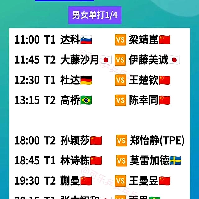 王楚钦打德国的杜达,实力占优,稳扎稳打就行。