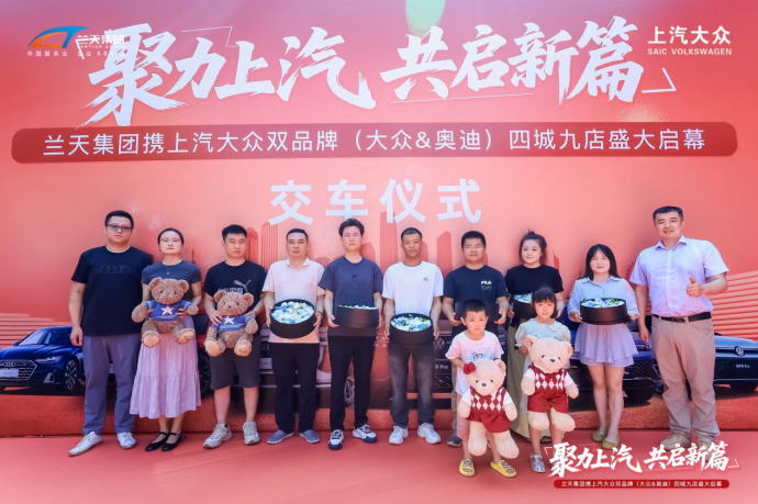 2025年8月4日上午,湖南汽车流通领军企业兰天集团在长沙河西汽车城举行"聚力上汽·共启新篇"开业盛典,携手上汽大众双品牌(大众&奥迪)同步启幕覆盖长沙、株洲、浏阳、怀化四城的九家新店。上汽大众汽车有限公司党委书记、总经理陶海龙先生、兰天集团董事长汤国华先生等双方高管共同出席,标志着中南地区高端汽车服务网络迎来战略性拓展。
