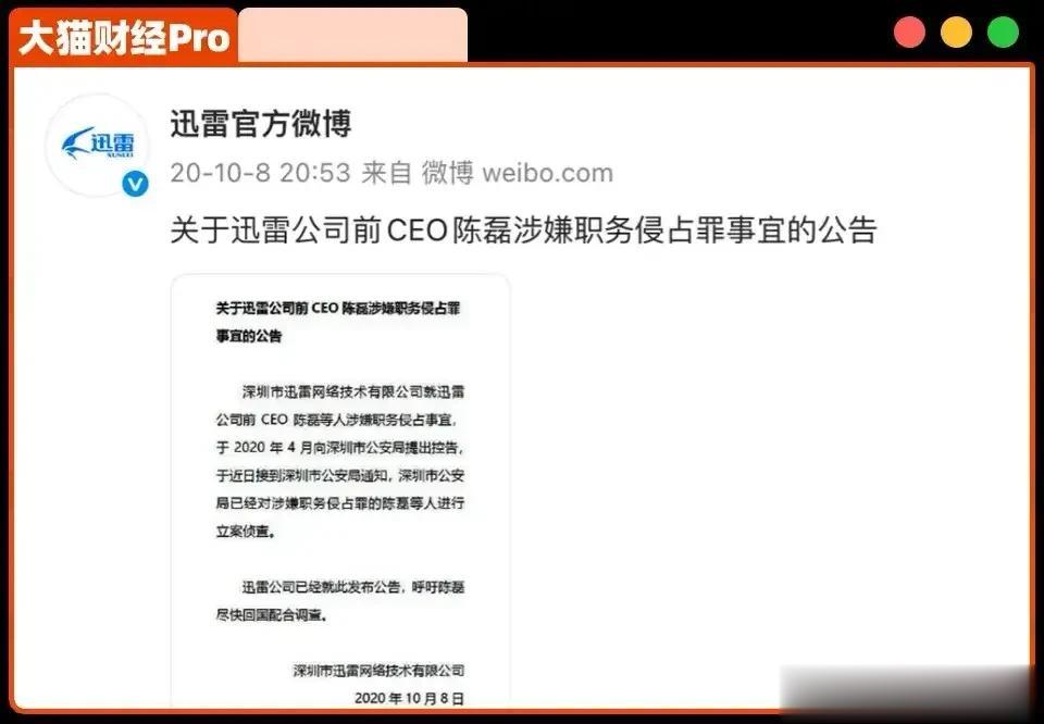 迅雷这几年惨得不行,3年亏了10个亿,雷总也被坑得血本无归。虽然刑事案件因证据不足撤案,但迅雷没放过他,现在起诉追偿2亿,哪怕钱要不回来,也要让他身败名裂。