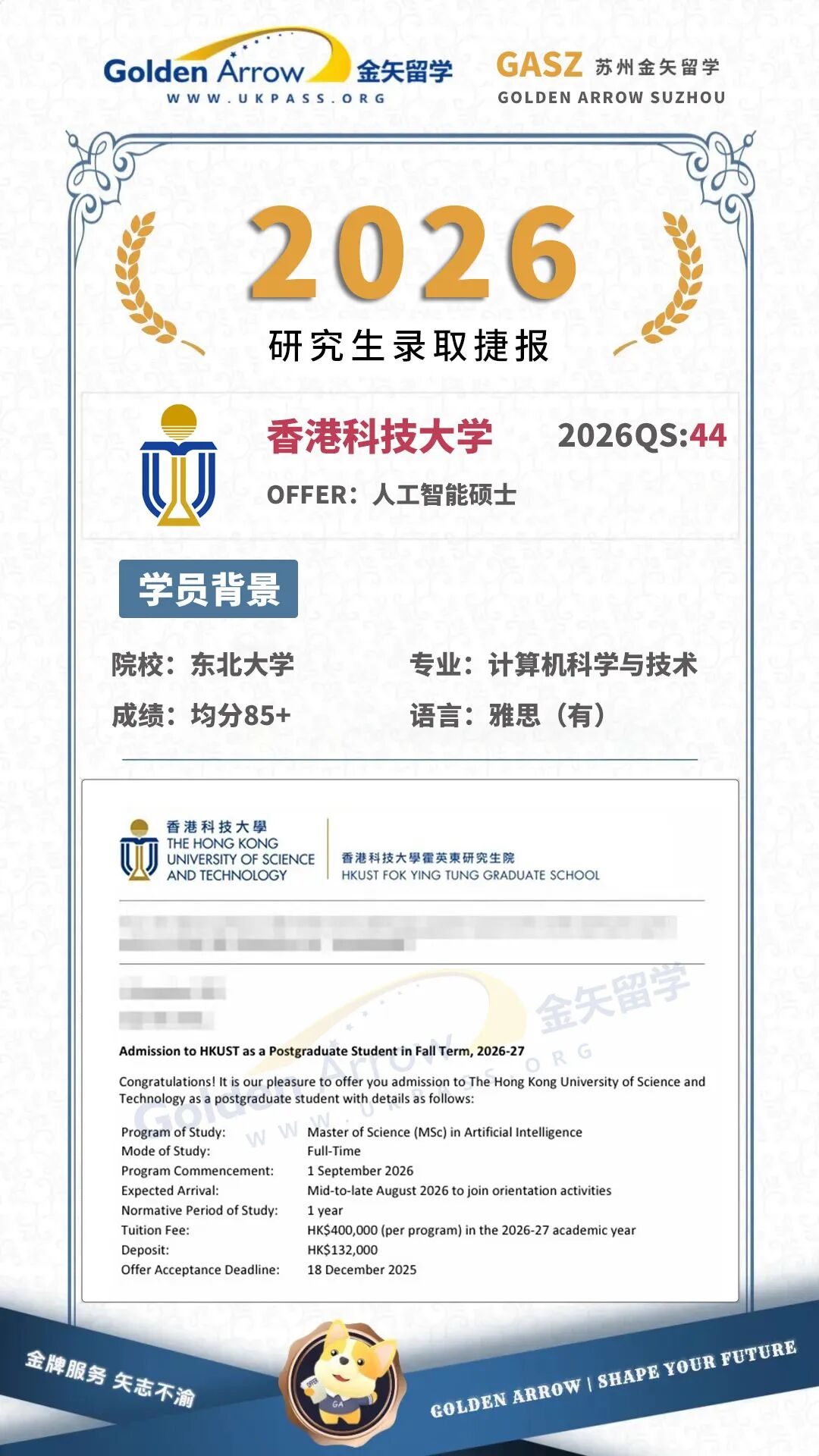 香港科技大学人工智能硕士录取offer