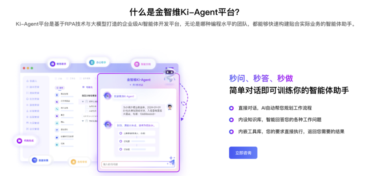 例如金智维的企业级智能体平台Ki-AgentS,其最具声望的不是生成回应的能力,而是能听懂复杂意图(语义理解增强)、能把任务拆成可运行的流程链(任务编排)、能真实在企业系统里跑(跨系统执行能力强),所以说,在“能读懂”和“能做到”之间,后者的技术门槛其实更高。