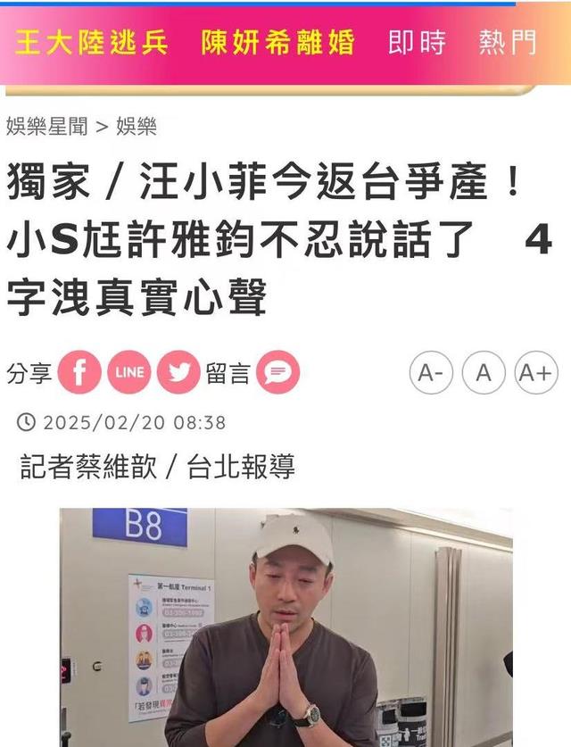令人意外的是,从大S去世到现在一直保持沉默的小S丈夫许雅钧,终于在2月20日做出了回应。