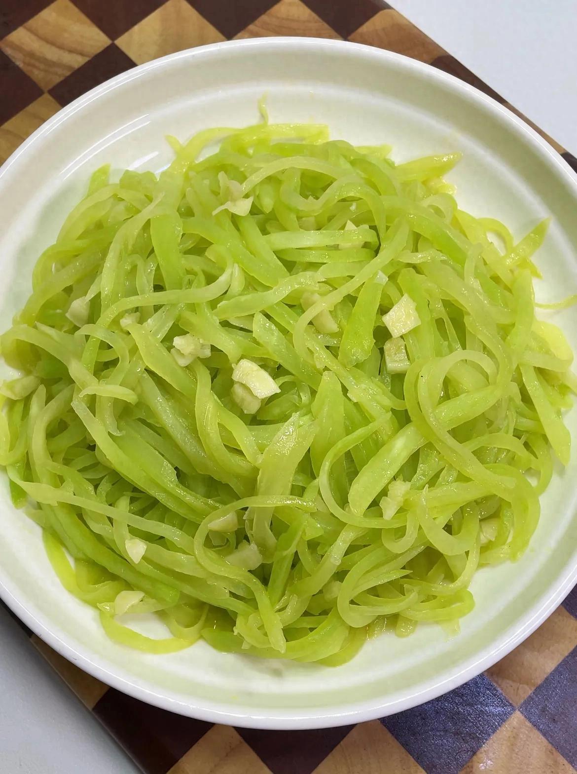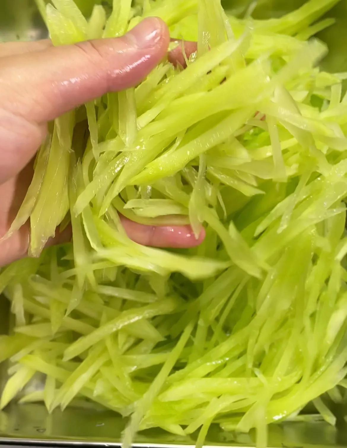 大火翻炒断生即可!按照这个方法做的莴笋丝,清香又脆爽,超级好吃!