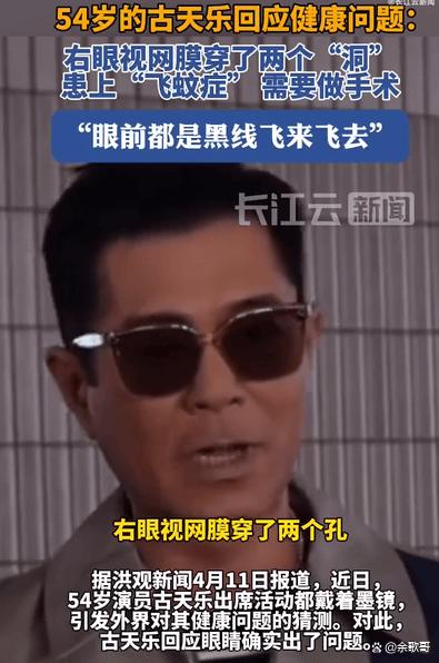 最近娱乐圈投下了一颗重磅炸弹,知名港星古天乐在活动中直言,自己右眼视网膜上赫然出现两个穿孔。这一消息如平地惊雷,瞬间在网络世界炸开了锅。大众对古天乐一直满怀敬意,他在演艺道路上拼搏多年,佳作频出,是娱乐圈有名的 “拼命三郎”。这次健康问题曝光,大家在揪心之余,也再度将目光聚焦到他那充满故事的人生,以及他被称作 “最穷影帝” 的缘由上 。