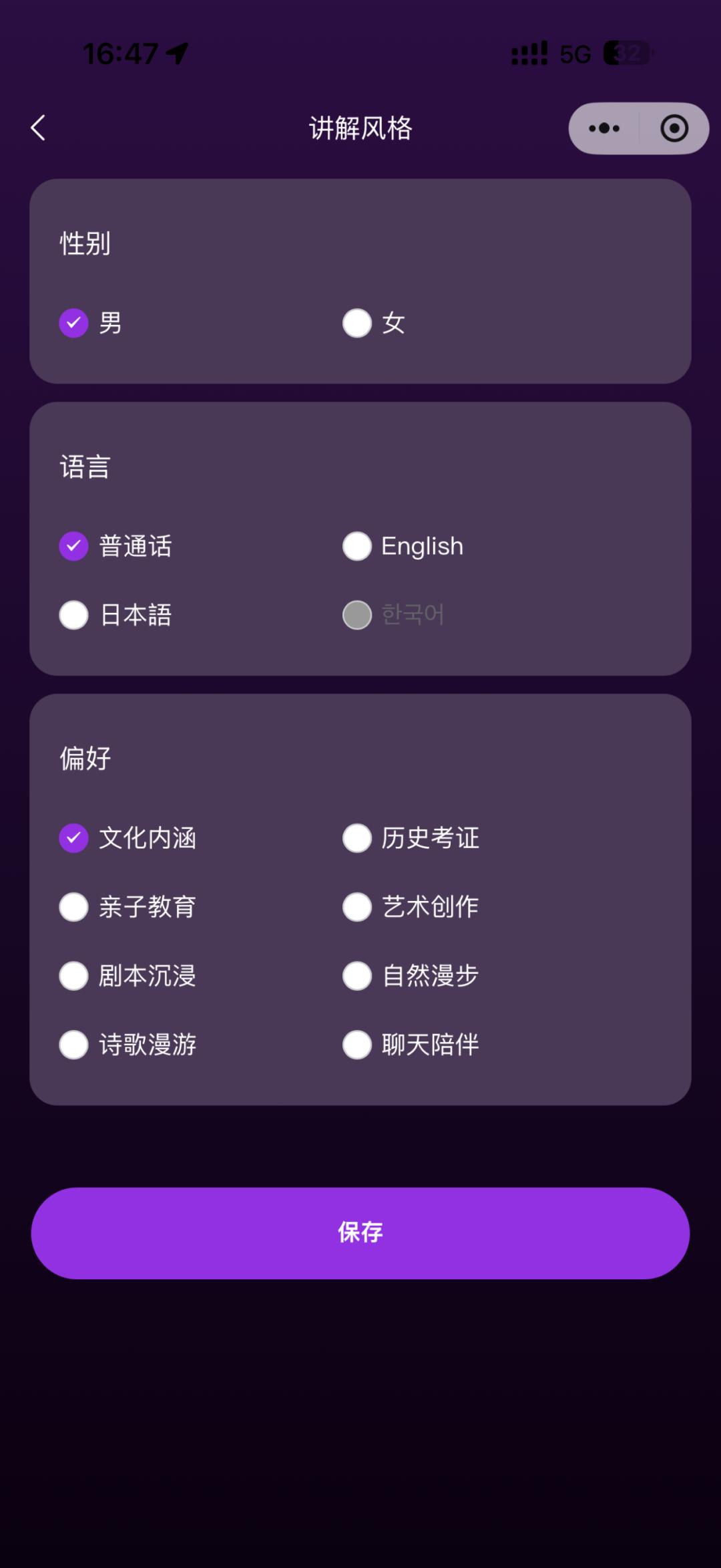 AI智慧导游还提供了多语种讲解和丰富的互动选择,从严谨的“历史考证模式”到生动的“剧本沉浸模式”,游客可以根据自己的兴趣选择不同的体验方式。