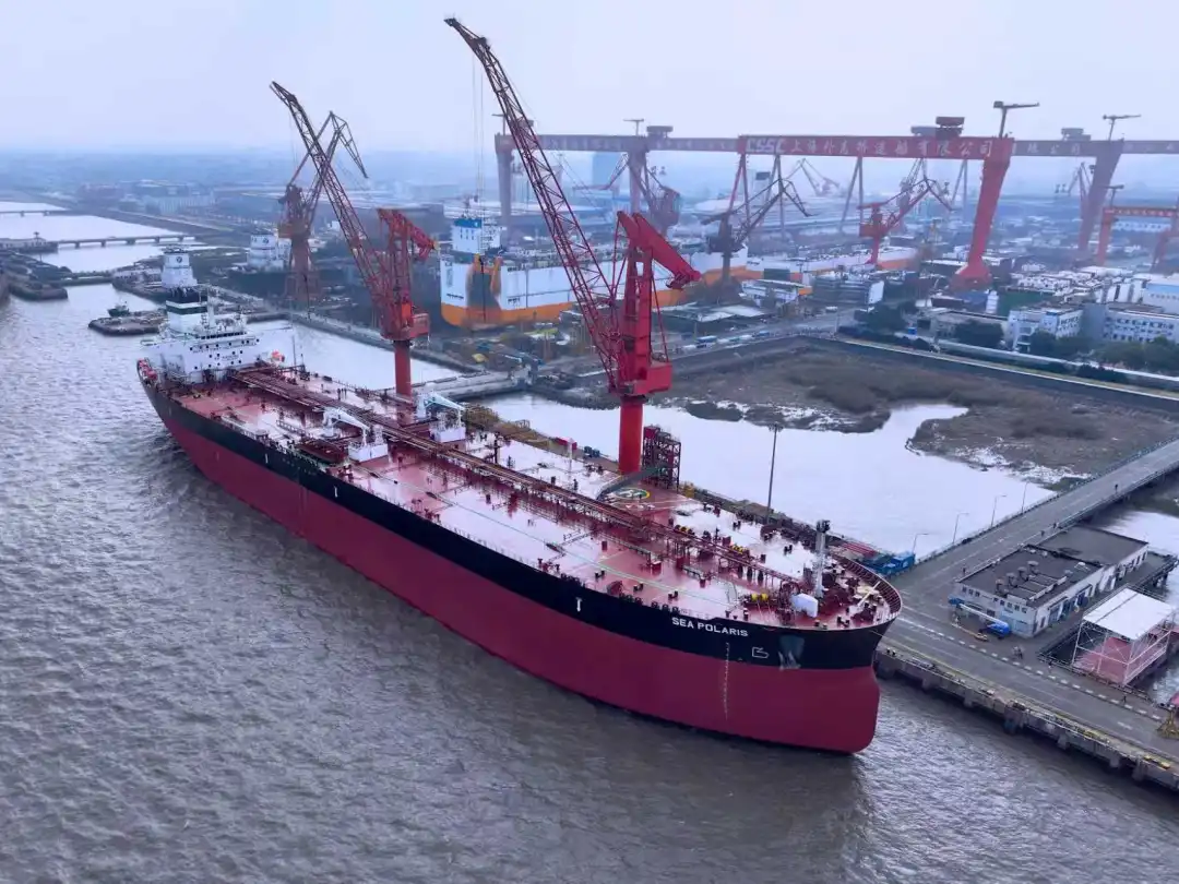12月1日,中国船舶集团旗下上海外高桥造船有限公司为挪威Frontline公司建造的15.8万吨苏伊士型原油轮“SEA POLARIS(海洋北极星)”轮正式签字交付,为公司全年交船任务画上了圆满句号。至此,2025年外高桥造船顺利交付29艘船舶,累计270.65万载重吨,以超额完成7艘的优异成绩交出了一份答卷。