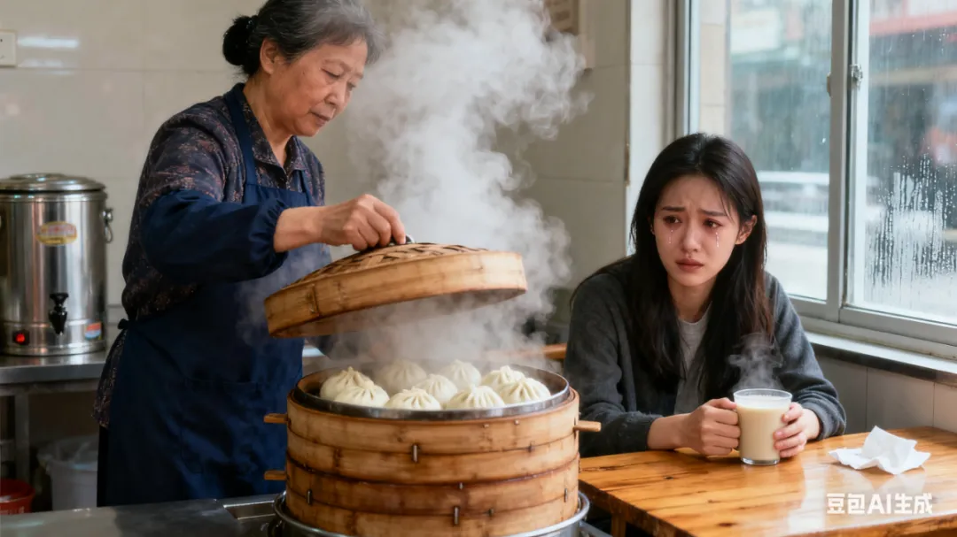 店里飘着豆浆的甜香,蒸笼冒着白汽,只有一位穿藏青色围裙的阿姨在擦桌子。她见我拖着脚步进来,没像往常一样问 “要肉包还是菜包”,而是转身从保温桶里舀了杯豆浆,用纸巾裹着杯壁递过来:“姑娘,看你好几天没笑了,眼眶都青了,是不是遇到难事了?”
