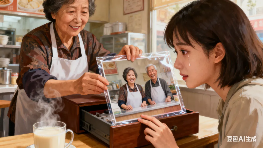 我捏着温热的豆浆杯,指尖的凉意被驱散了些,原本憋了一肚子的话突然涌上来,声音也发颤:“阿姨,我做的项目黄了,领导要我写检讨,老家我妈摔了,我连护工费都凑不齐…… 我觉得自己特别没用。” 说着眼泪就砸在豆浆杯上,溅出小小的水花。