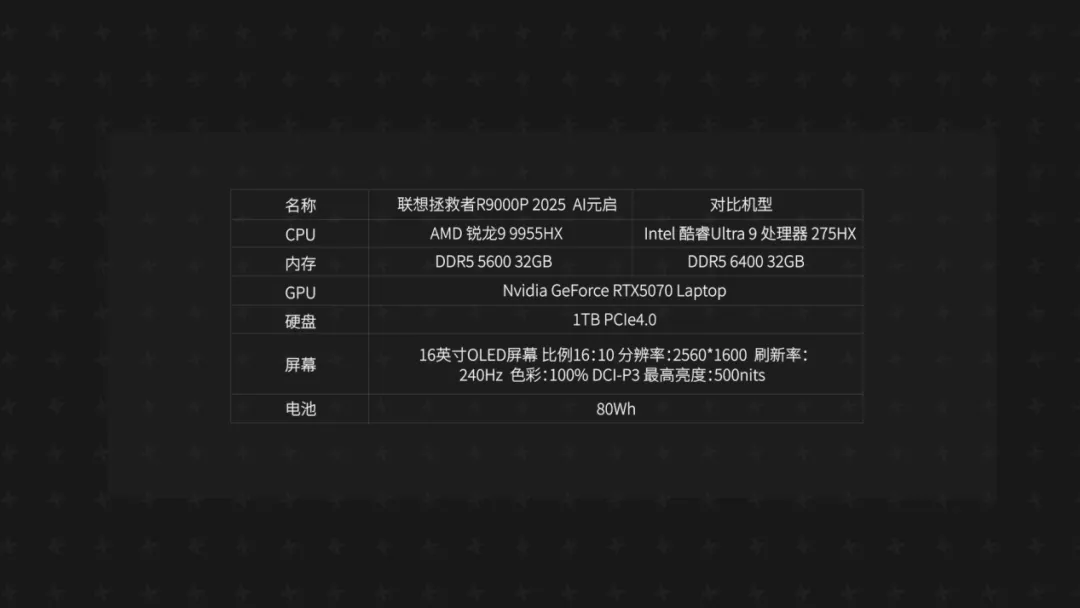 为了让结论尽可能客观,本次测试在测试环境的设置上尽量克制。联想拯救者R9000P AI元启与作为参照的对比机型,在CPU之外的关键硬件配置上保持高度一致。