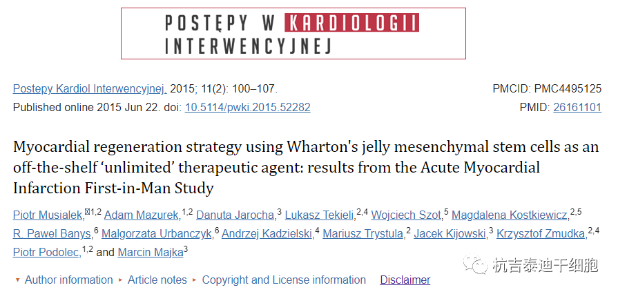 在这两种情况下,药物都是同种异体的,这提供了其他自体产品的强大优势,因为可以在发布前对安全性和效力进行详细测试。如今,其他来源的MSC也用于临床治疗。波兰克拉科夫雅盖隆大学医学院心脏血管疾病系使用沃顿果冻分离的间充质干细胞治疗急性心肌梗死患者,显示了该疗法的安全性和可行性。
