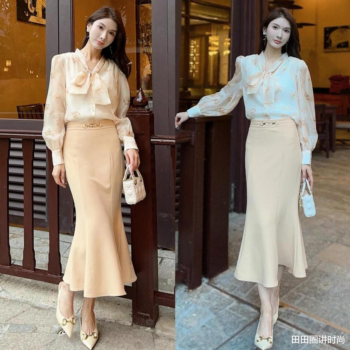 鱼尾半身裙可是一种极具女人味的单品,因为它拥有修身的剪裁,包裹住我们的腰臀曲线,穿在身上非常温柔浪漫,搭配一双尖头低跟鞋,特别增高。