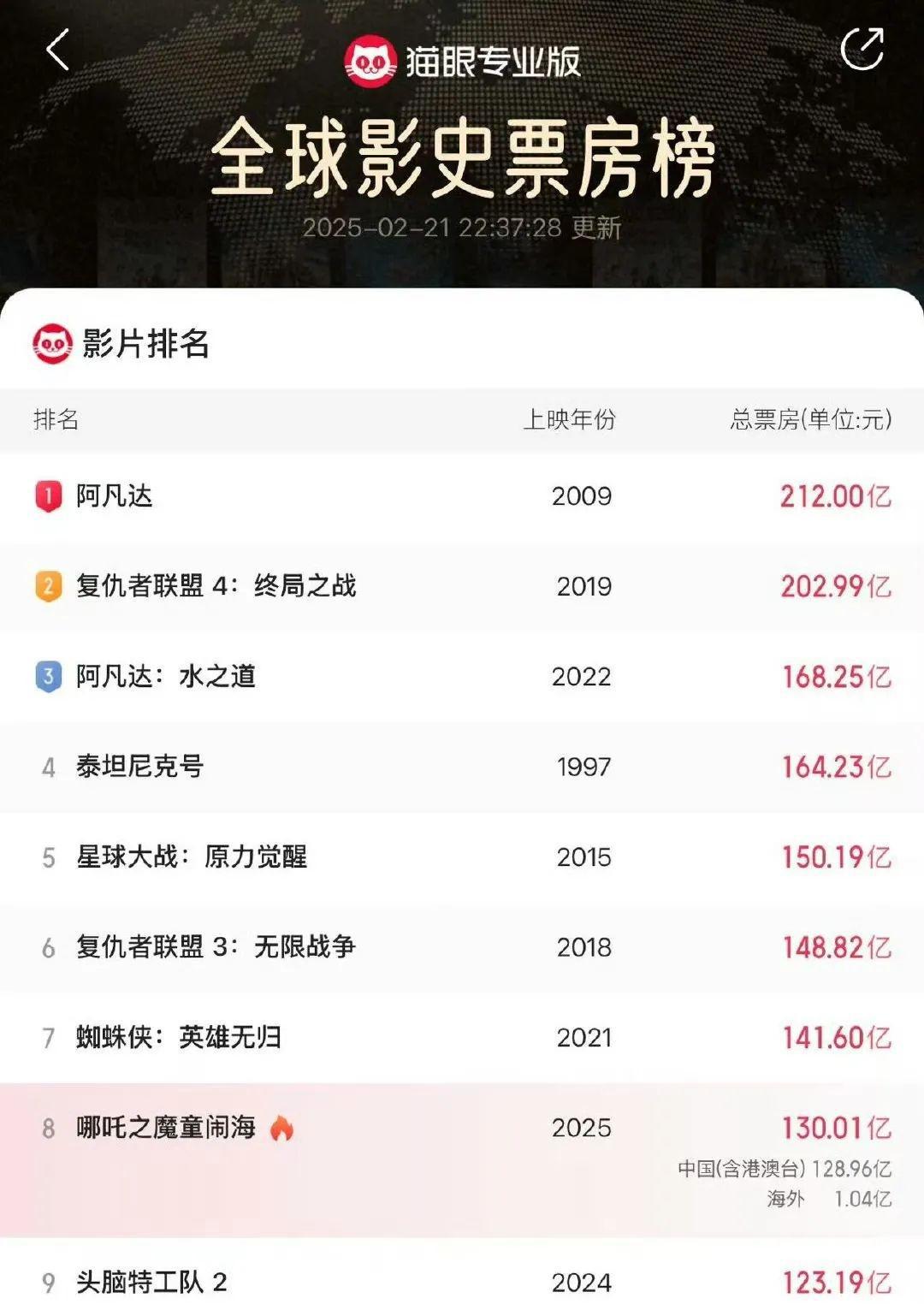 这部哪吒动画片简直是太火了,上映才23天就搞出130多亿票房,这数字看着都眼晕。要知道这可不是小数目,放在全球票房榜单上都能排到第8名了,就差那么一丢丢就能超过蜘蛛侠那部片子。咱中国动画能有这成绩,说实话我是真没想到的,以前总觉得国产动画就是给小孩子看的,质量也就那样,哪能跟迪士尼皮克斯比。但这回可不一样了,直接把《头脑特工队2》给干下去了,成了全球动画票房冠军,这脸打的,啪啪响啊。