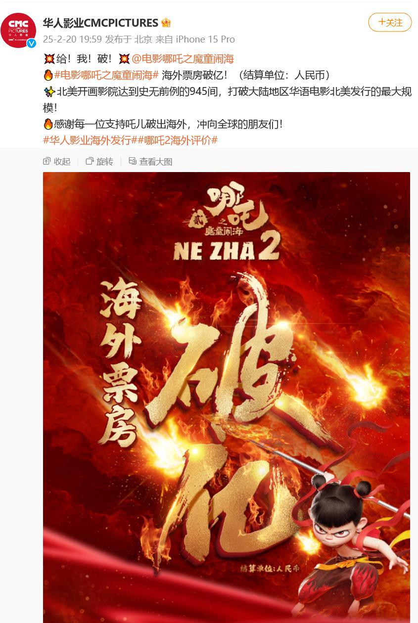 北美开了945家影院放这部片子,这数字听着好像也不是特别多。但要知道,这可是创下了华语电影在北美发行的最大规模啊。以前咱们中国电影去北美,能开个几十上百家影院就不错了,哪像这次这么大手笔。这说明啥呢?说明北美那边的院线对这片子很有信心,觉得能吸引观众,赚到钱。