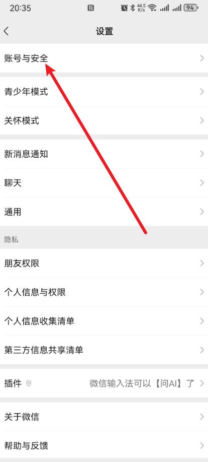 第二步:在设置中我们再找到并点击【账号与安全】;