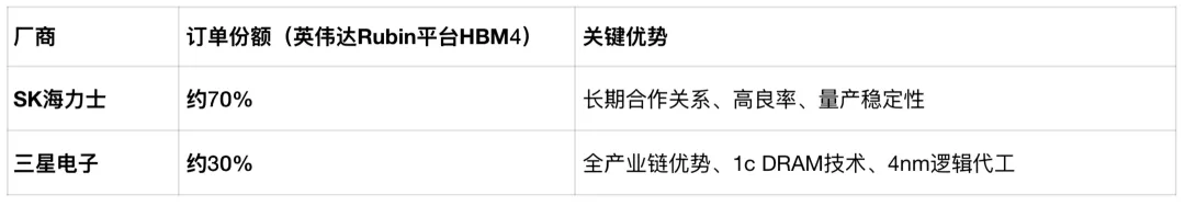 ·SK海力士的良率优势:SK海力士在HBM3/HBM3E时代通过稳定的量产良率赢得了英伟达的长期信任,这种信任壁垒是其在HBM4初期订单中占据优势的关键 。