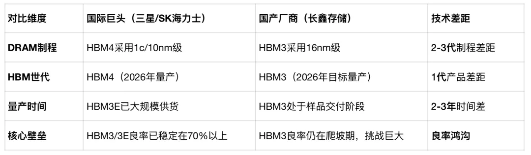 HBM的先进封装需求,为中国本土产业链提供了“弯道超车”的机会。然而,必须清醒地认识到,国产HBM与国际巨头之间仍存在显著的技术代差和良率鸿沟。