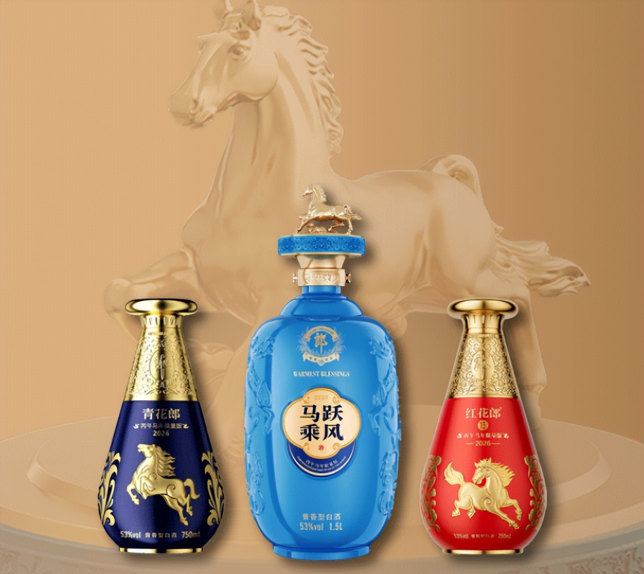 郎酒郎酒是生肖酒赛道的长期耕耘者,2026年更采取矩阵式推出三款不同价位的马年限量产品(见下图),分别是:青花郎·丙午马年限量(左)、马跃乘风·丙午马年限量版(中)、红花郎·丙午马年限量(右)。