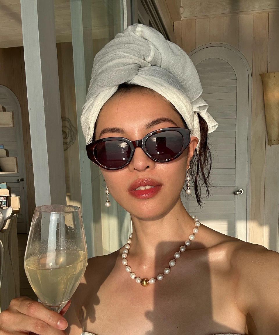 2月28日晚上,钟楚曦一组马尔代夫度假自拍照杀疯了社交平台。你说这姐也会享受生活——戴着大墨镜,举着香槟,直接在海边阳光下凹造型,白色比基尼穿得那叫一个自信。化了个特别精致的妆,皮肤又白又亮,搭配她那标志性的珍珠项链和大耳坠,贵气得简直像是香奈儿广告大片的流动代言人。