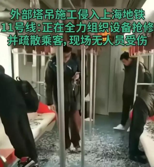 近日,上海11号地铁线路发生了一起令人惊心动魄的事故。一列高速行驶的地铁列车与一座塔吊发生了碰撞,现场情况十分危急。