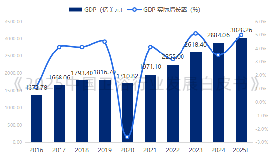 表1:2016-2025E哈萨克斯坦GPD总值(亿美元)及年增长率