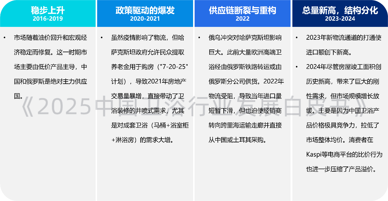 2016年至2025年,哈萨克斯坦从一个单纯的石油国家,逐步转型为欧亚大陆的物流枢纽和新兴消费市场。其卫浴市场正在经历一场深刻的消费升级与品牌换血。