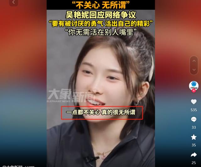 面对外界各种各样的声音,吴艳妮在接受采访的时候,说得特别干脆。