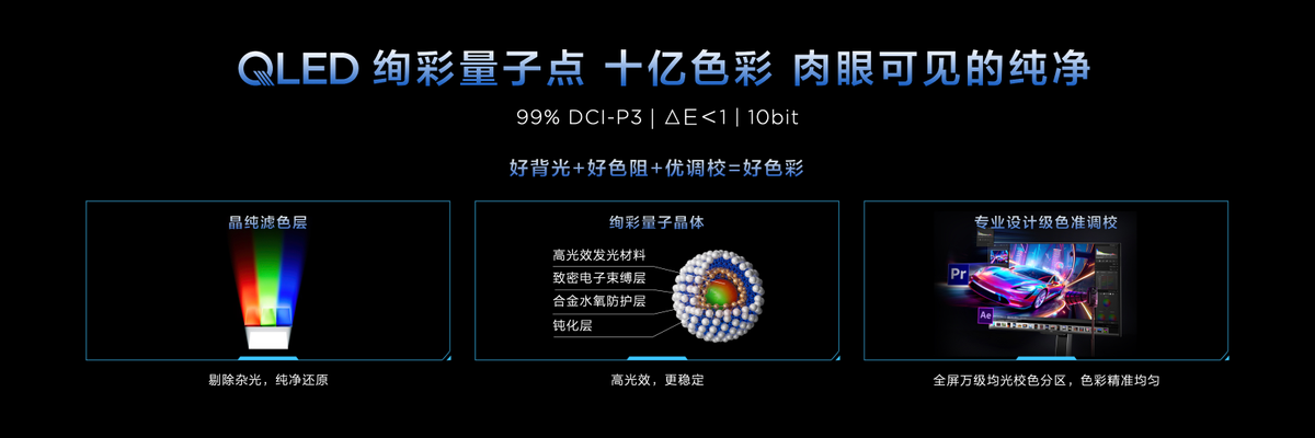 如果说光影是沉浸感的骨架,那色彩就是填充灵魂的血肉——谁愿意在色彩泛白、偏色的屏幕上玩精心打磨的3A大作啊?所以C3A Pro在色彩上也没含糊,搭载了QLED绚彩量子点技术,其99% DCI-P3广色域和△E<1的专业色准,能呈现10亿种色彩,色彩又纯又准,还原度直接拉满。就像《黑神话:悟空》里红墙黛瓦的温润底色、壁画上浓淡相宜的色彩层次,还有人物服饰的细腻配色,它都能精准还原,没有一丝偏色,每一种色彩都鲜活通透,玩起来就像真的走进了游戏里的神话世界一样,彻底跟普通显示器“画面脏、泛白、偏色”的毛病说拜拜。