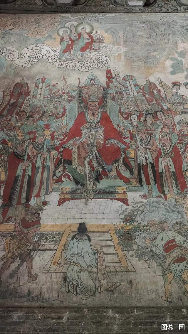 他冰瑜寺壁画(12世纪):武士形象红面长髯,手持青龙刀,与山西运城元代《关王出行图》构图相似度达78%