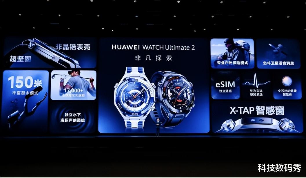 华为WATCH Ultimate 2非凡探索首发搭载手表水下独立通信功能海豚通信,支持北斗卫星语音消息以及150米潜水级防水,户外探险爱好者以及偏远地区的科研人员都很需要,信号稳、通信强,还有专业级防水,可以更加自如的应对恶劣的环境和气候。