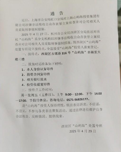 在掌握了事实证据之后,上海和杭州两地的警方立即出动,已经对山屿海进行了立案调查。