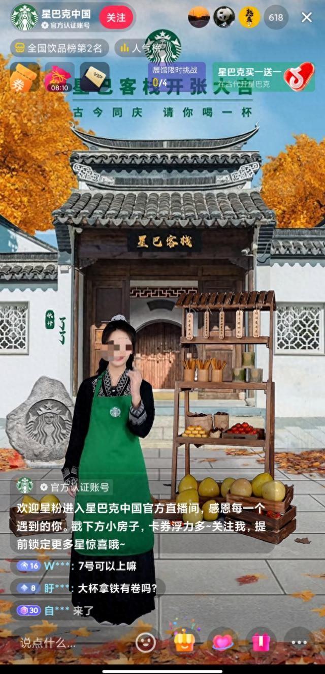 9月19日下午,星巴克自制短剧《我在古代开星巴克》第一集上线,该剧一共六集,讲述星巴克咖啡师意外穿越,和公主一起开“星巴客栈”卖咖啡的故事。剧中结合各位咖啡师的籍贯,特别露出了星巴克9月上市的新品,如来自秦晋的火晶柿子星冰乐、代表燕赵的板栗红豆拿铁等。红星资本局注意到,今日,星巴克抖音直播间也推出了短剧同款饮品,39.9元两杯等“星巴客栈开业福利”。
