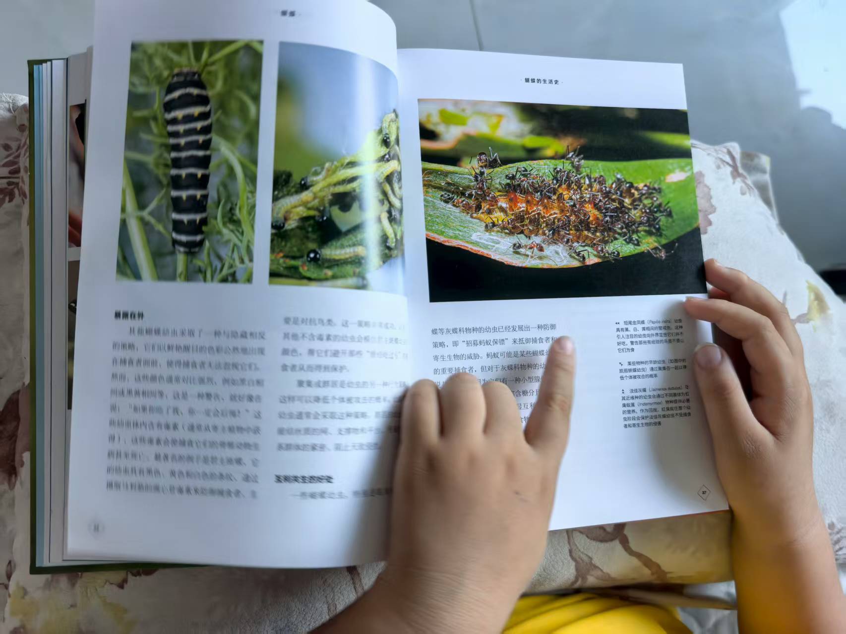 陪他看一本书,差不多看出了十万个为什么。确实,这本书都能给出答案,从蝴蝶的种类到它们的生存技巧,书中图文并茂,详细解答了孩子的每一个疑问,让他对自然界的奥秘充满了好奇与敬畏。