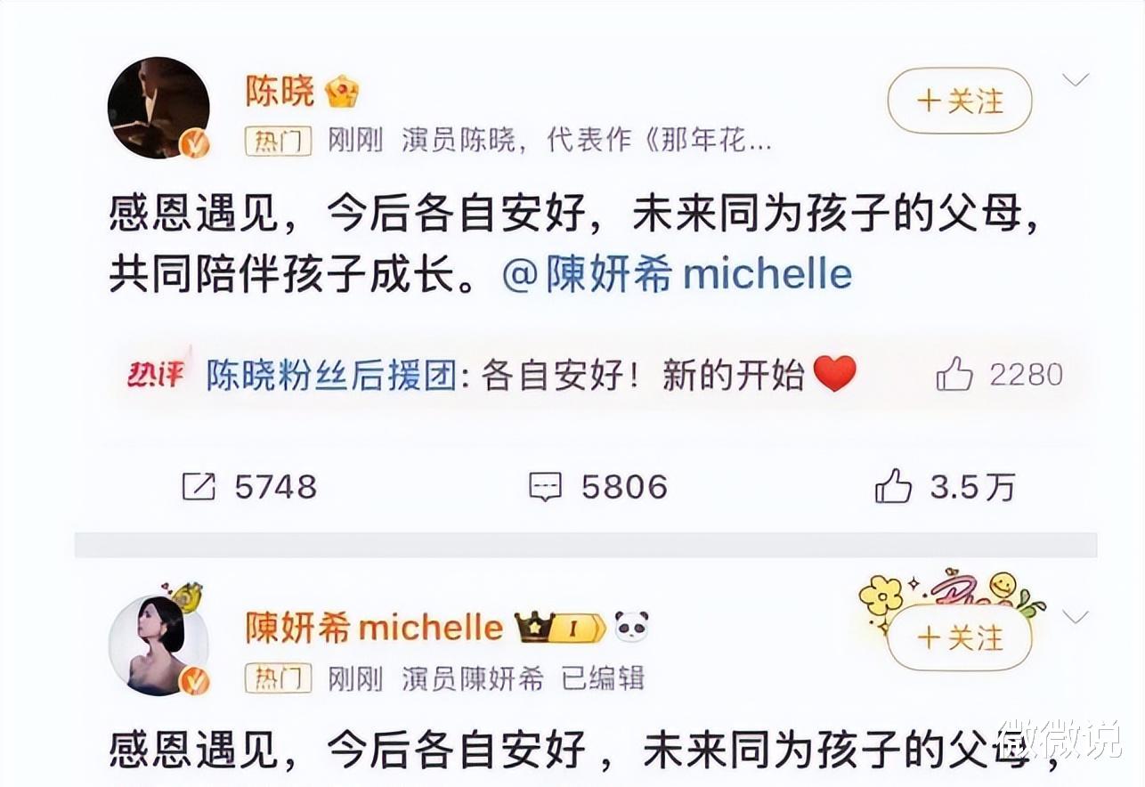 在此之前,陈妍希和陈晓的离婚事件曾占据各大娱乐版面。