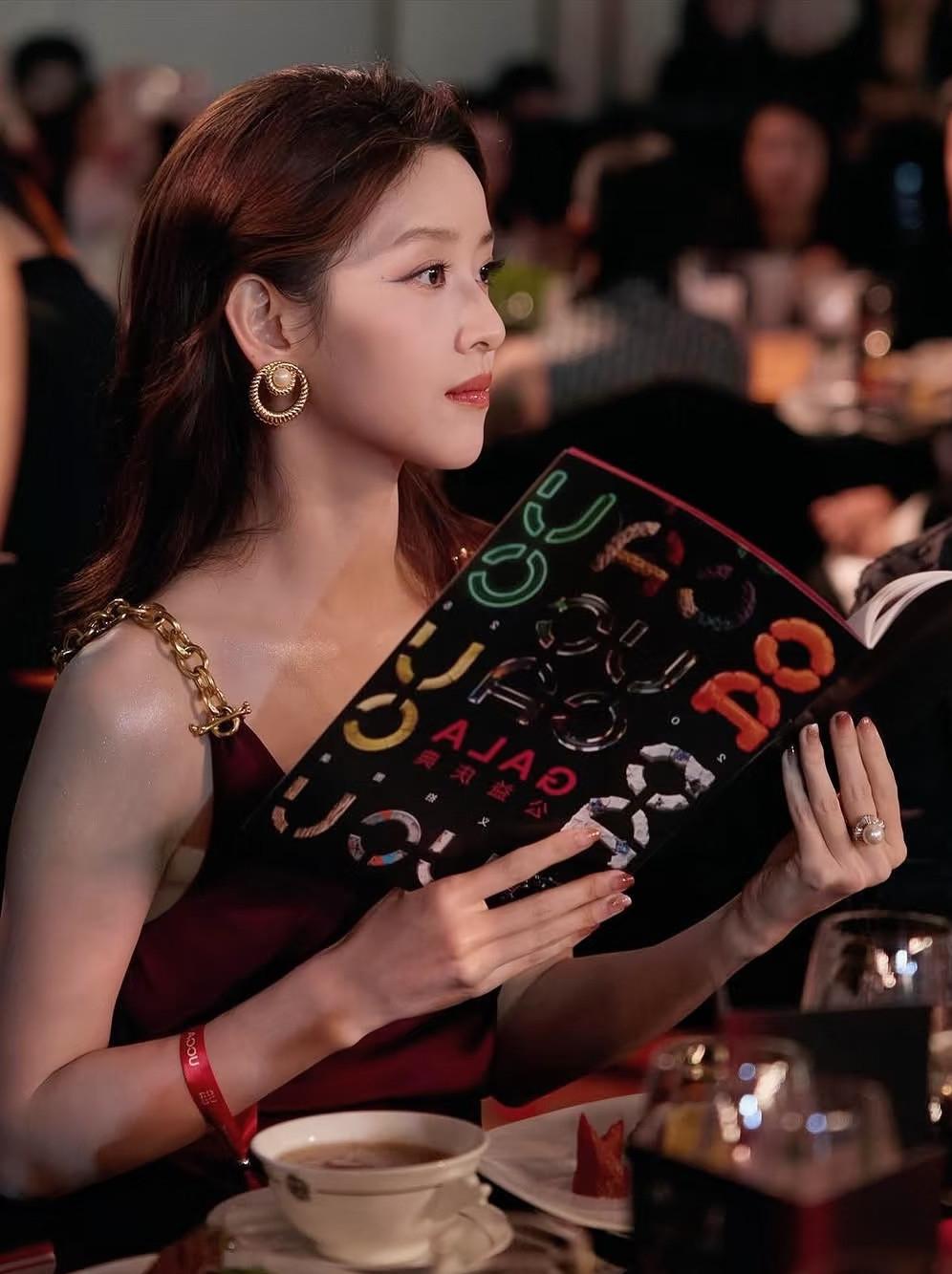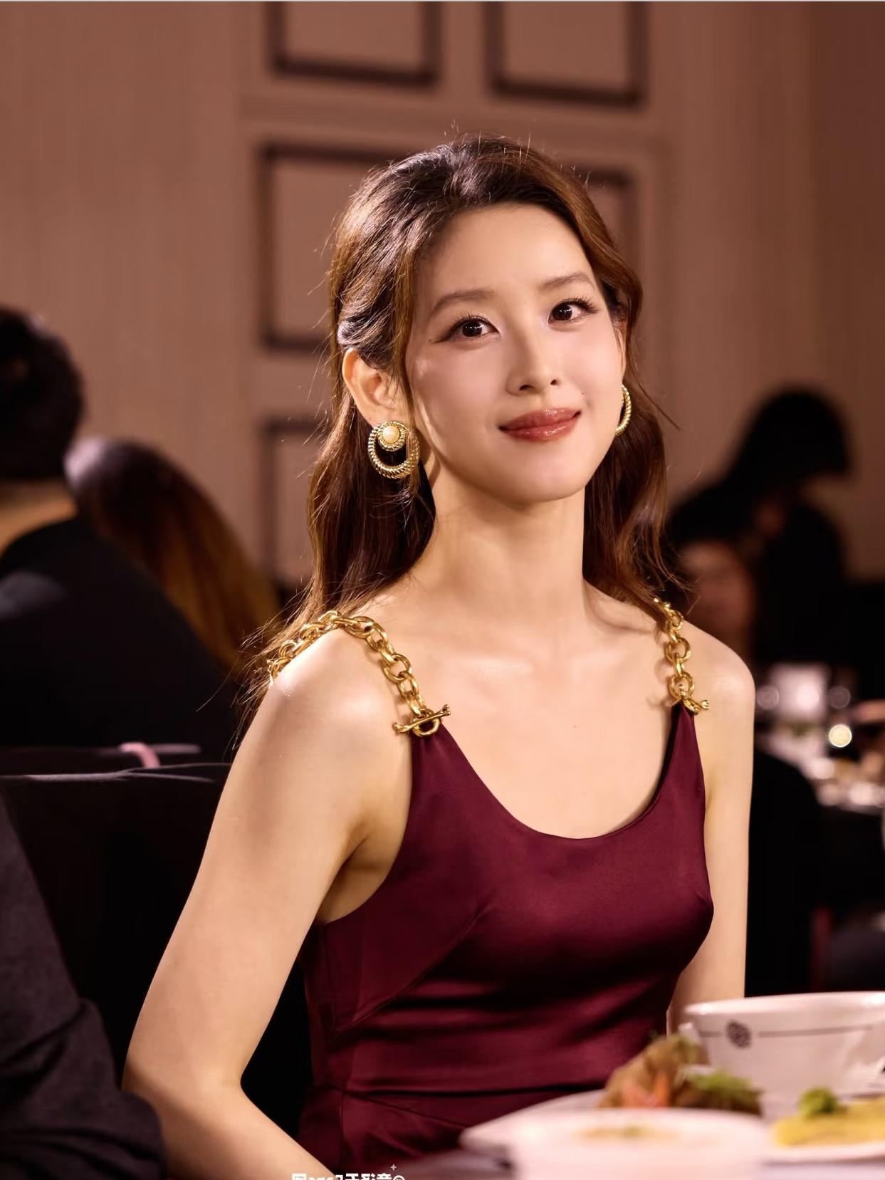 迪拜亚特兰蒂斯酒店的圣诞树前,章泽天以一袭酒红色修身内搭配黑色丝绒阔腿裤的造型惊艳亮相。